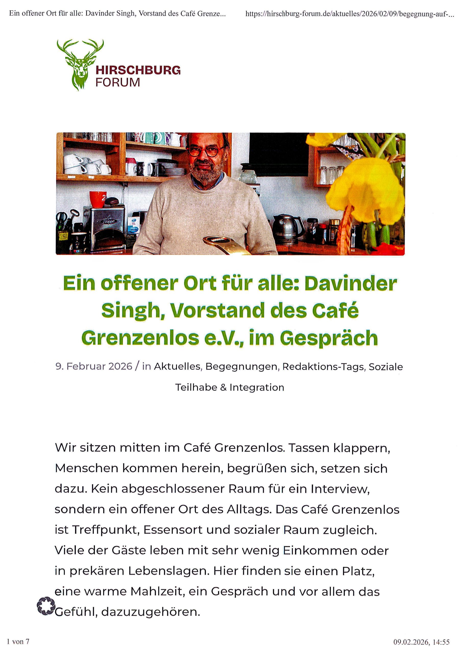 „Ein offener Ort für alle“: Davinder Singh ,im Gespräch mit dem Hirschburg Forum: